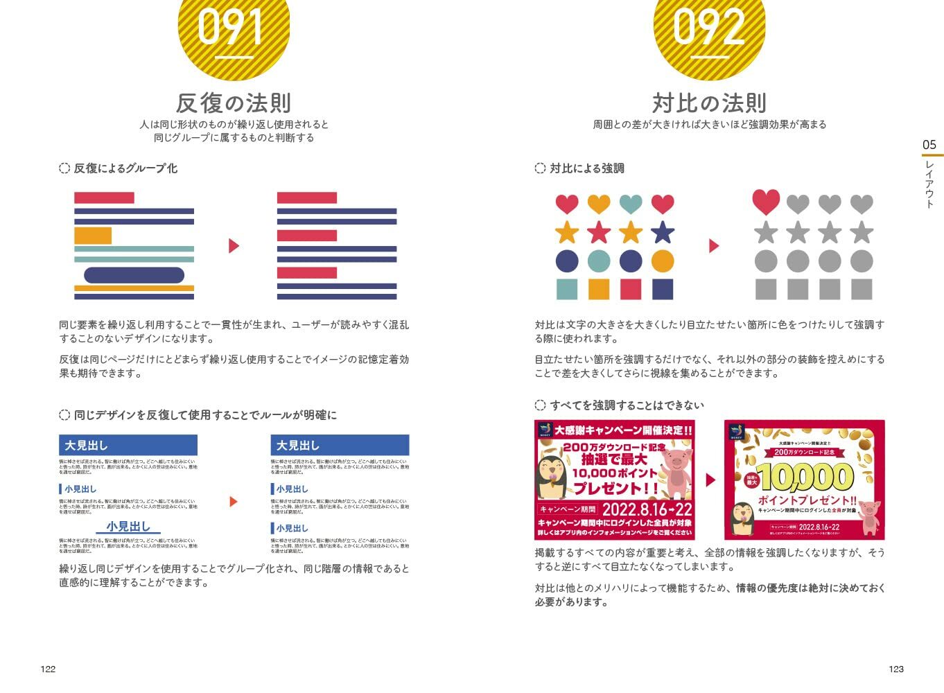 This book first introduces usage examples of what kind of psychological laws are hidden in designs such as websites, posters, and banners that are often seen, and then introduces the laws of each psychological effect, optical illusion effect, color effect, and layout. I will briefly introduce it on a page-by-page basis.