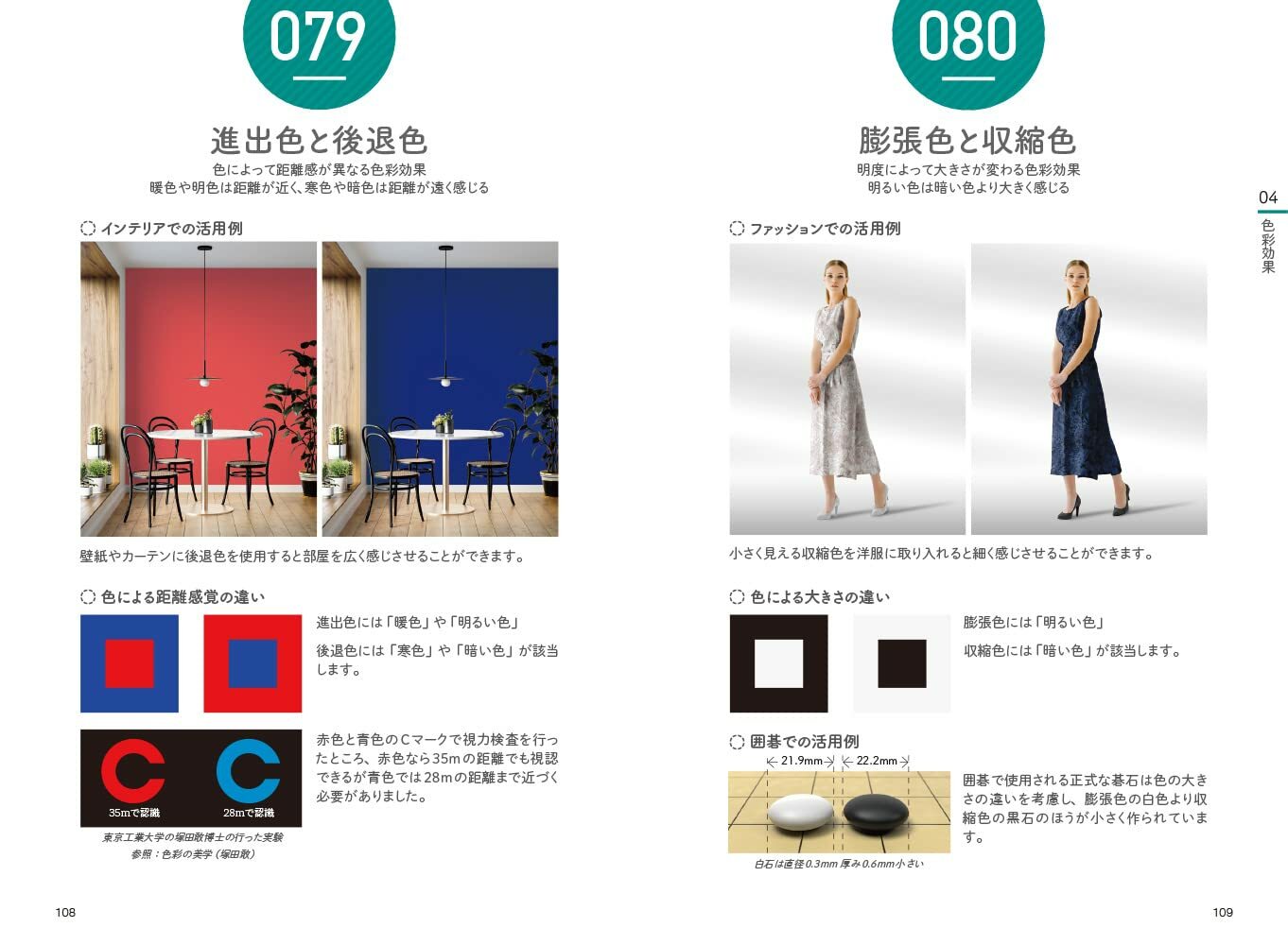 Heavy and light colors / Taste imaged by color / Taste image and color difference / Compatibility between food and complementary colors / Color sensation by tone, etc.