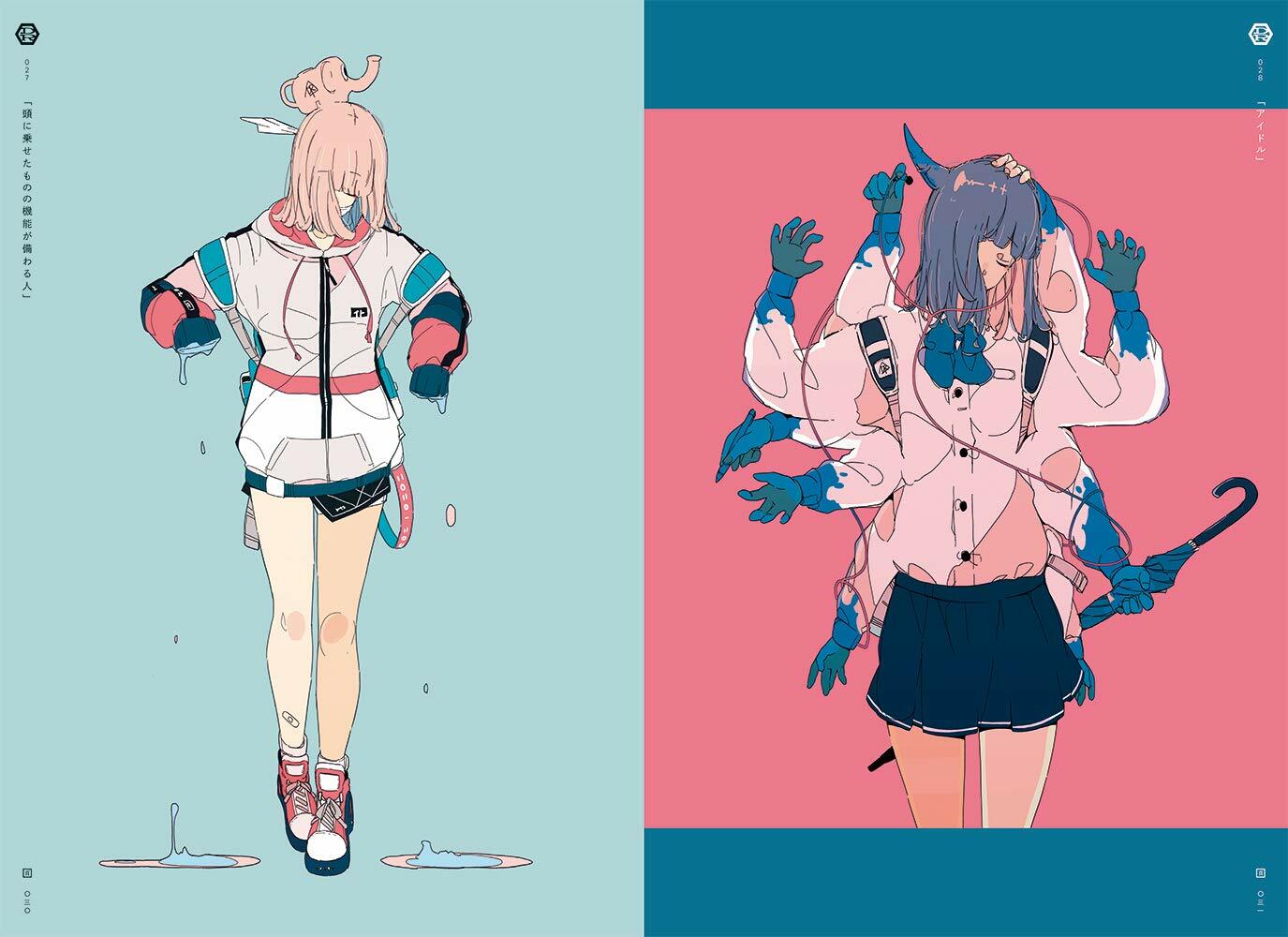 The title of this new book “USHIMITSUDOKI”, meaning “in the dead of night” or “witching hour”, was chosen because the many melancholic girls illustrated in this book were given wings and horns to make them look like Yokai spirits, adding a creepy feel to each of the illustrations (as in the cover art). Collecting over 140 illustrations, including original illustrations and commercial works, this book is the world’s most anticipated book in the anime/manga illustration scene.