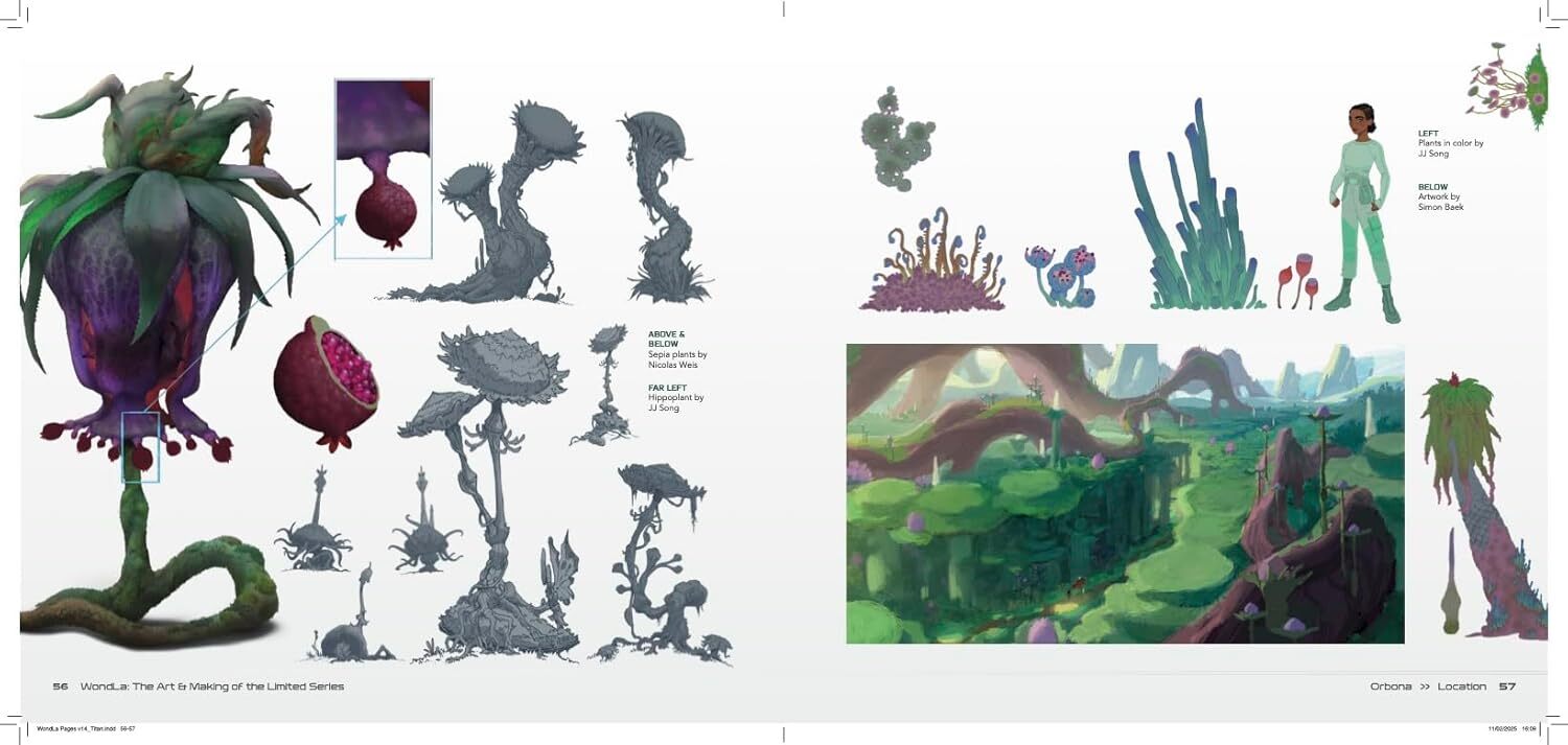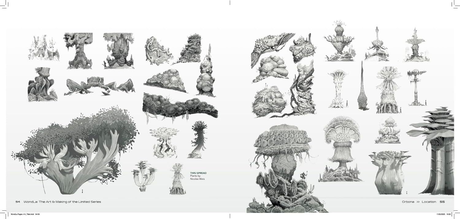 Beyond design documentation, the book offers a practical lens on adaptation. WondLa is based on Tony DiTerlizzi’s series and was produced by Skydance Animation for Apple TV+, meaning its creation involves both textual translation and cinematic reconstruction. The materials reveal how a literary universe is restructured into design specifications for character arcs, spatial geography, material systems, and performance, while also illuminating how series-scale animation balances visual coherence, narrative beats, and the demands of a modern production pipeline.