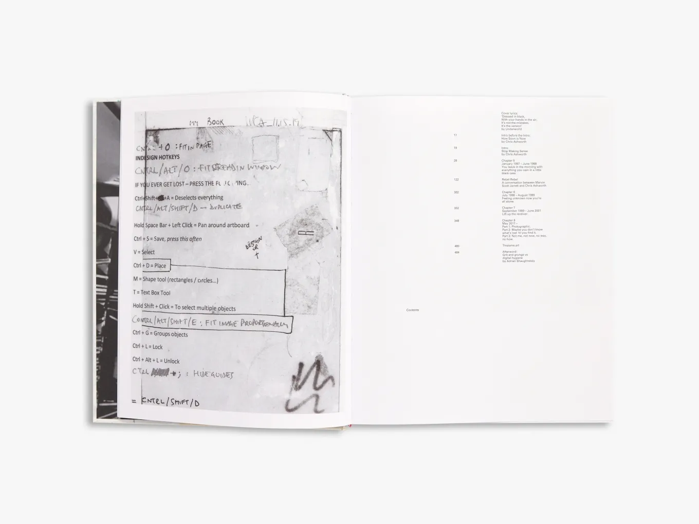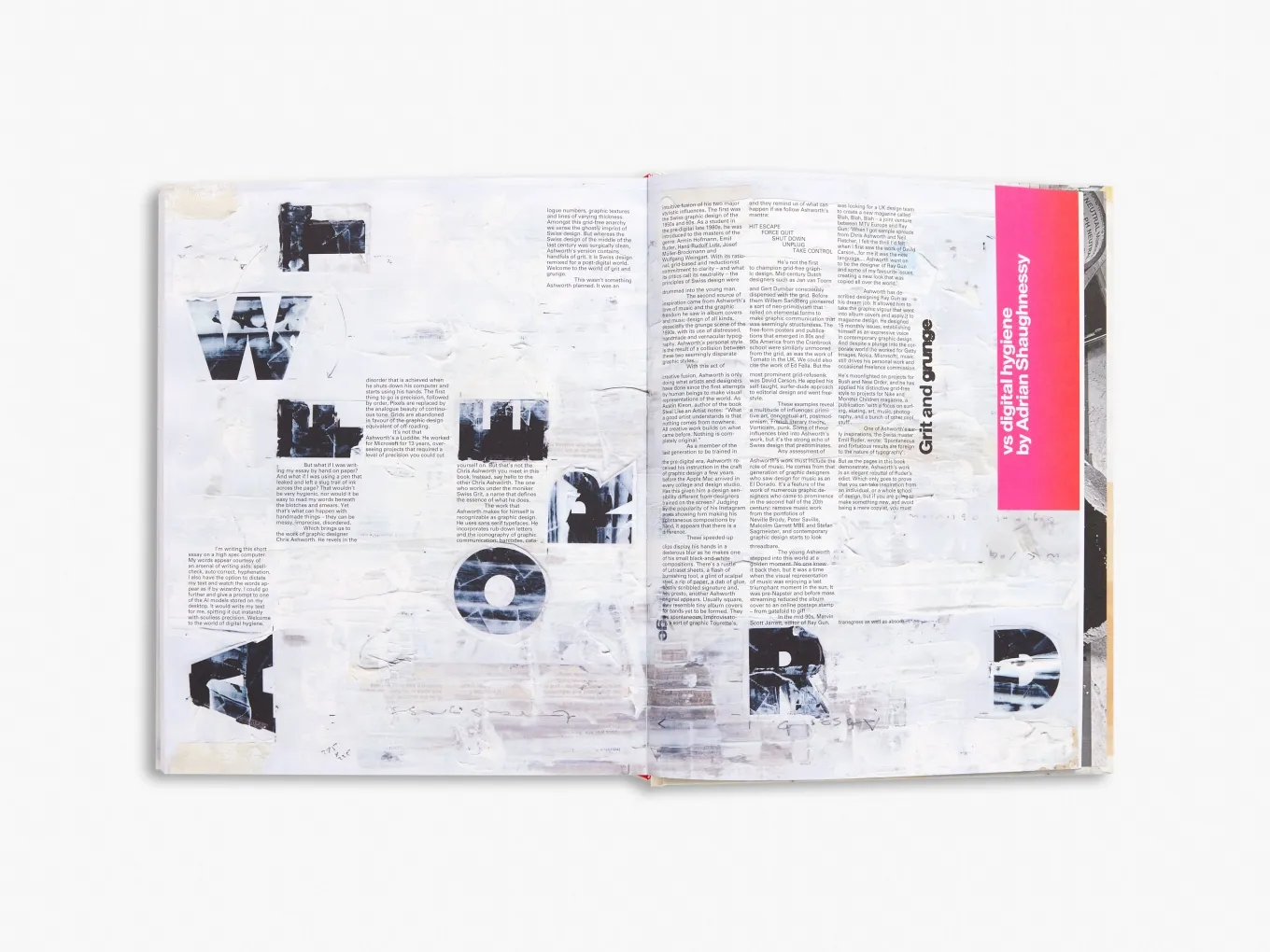 本書完整收錄 Ashworth 在 1997 至 2024 年間 的設計作品,涵蓋 488 頁,包括《Ray Gun》雜誌 第 44–58 期 的已發表與未發表作品,並特別呈現其標註批註的打樣稿(chromalins)、日記筆記與早期未採用的版面設計。從他作為獨立設計師的探索,到躍升為 微軟(Microsoft)西雅圖總部創意總監 的職業軌跡,本書完整記錄了他的創意歷程,並收錄其「拾得字體」攝影作品(found-type photography)及受音樂啟發的視覺創作,展現他對於手工設計的堅持與熱愛。