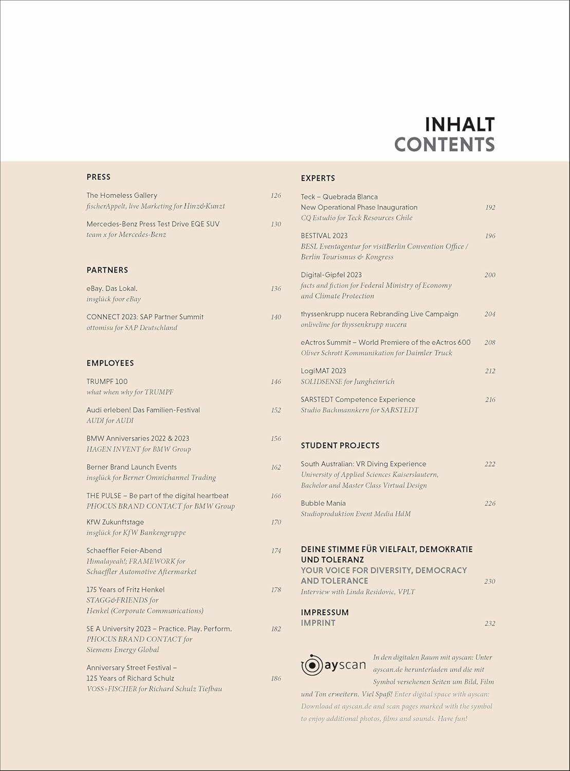 本書由活動設計專家Katharina Stein撰寫,她以專業記者的視角提供權威見解。作為eveosblog的共同創辦人,Stein憑藉其豐富的經驗與洞察,為本書注入了專業深度。雙語編排的特色更方便英語和德語讀者學習參考。