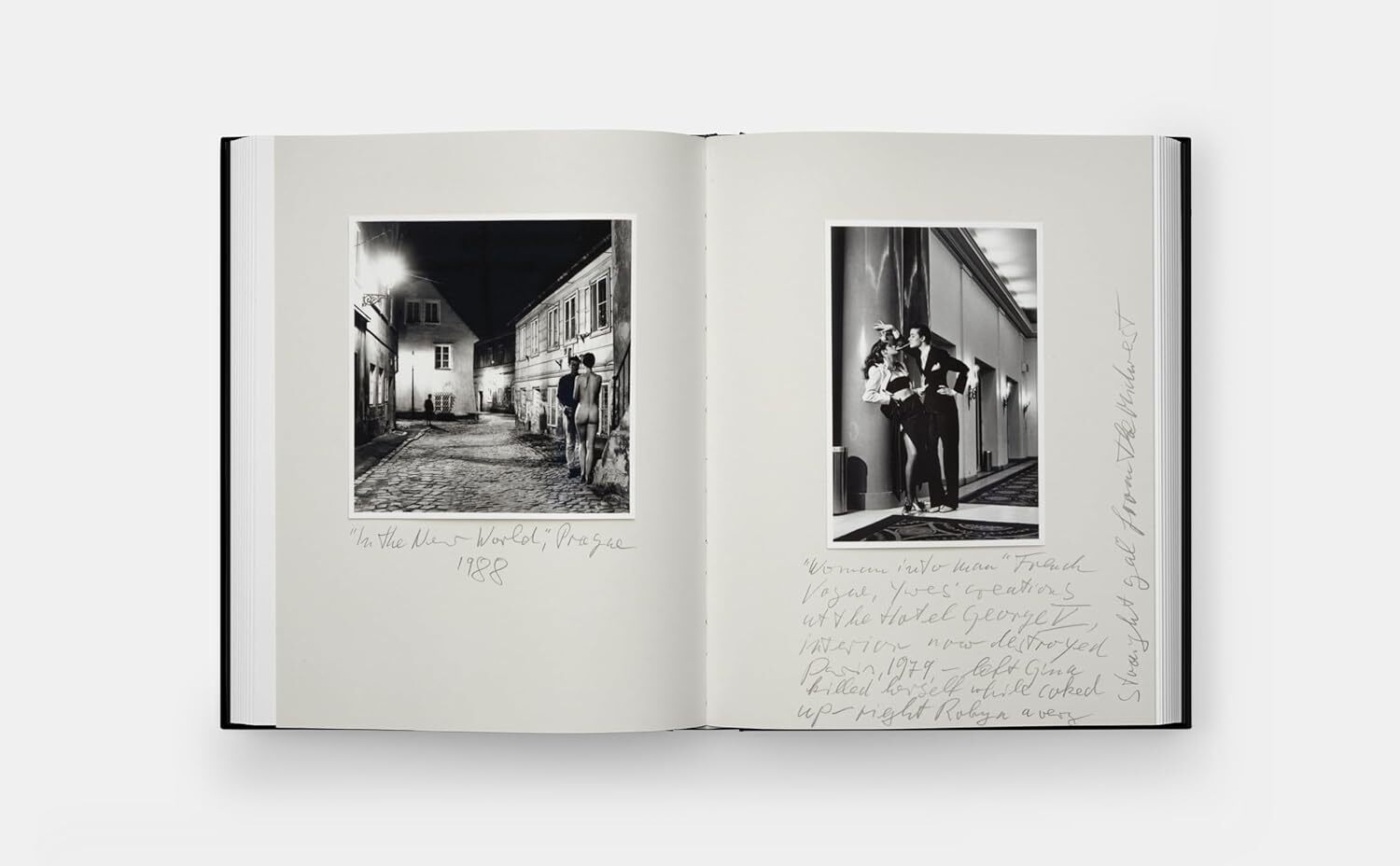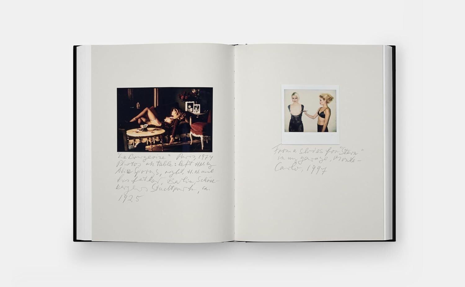 The book includes more than 100 photographs, comprising 8 unique Polaroids, 16 chromogenic prints, and 79 gelatin silver prints. Each image retains Helmut Newton’s original handwritten pencil annotations, offering a direct glimpse into his immediate thoughts on composition, lighting, and emotional tension, and making the volume an invaluable resource for both research and collectors.