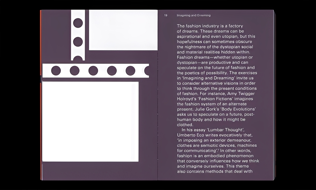 書中融合跨領域的想法、實驗精神與美學探索,使時尚成為一種自我表達、身體體驗與社會交流的媒介,創造更多可能性。《Radical Fashion Exercises》提供了一套既有意義又具啟發性的學習和創作方法,對設計學生、專業設計師、寫作者,甚至不同領域的創作者來說,都是在當下不穩定時代中重新思考、挑戰時尚的既定意象。