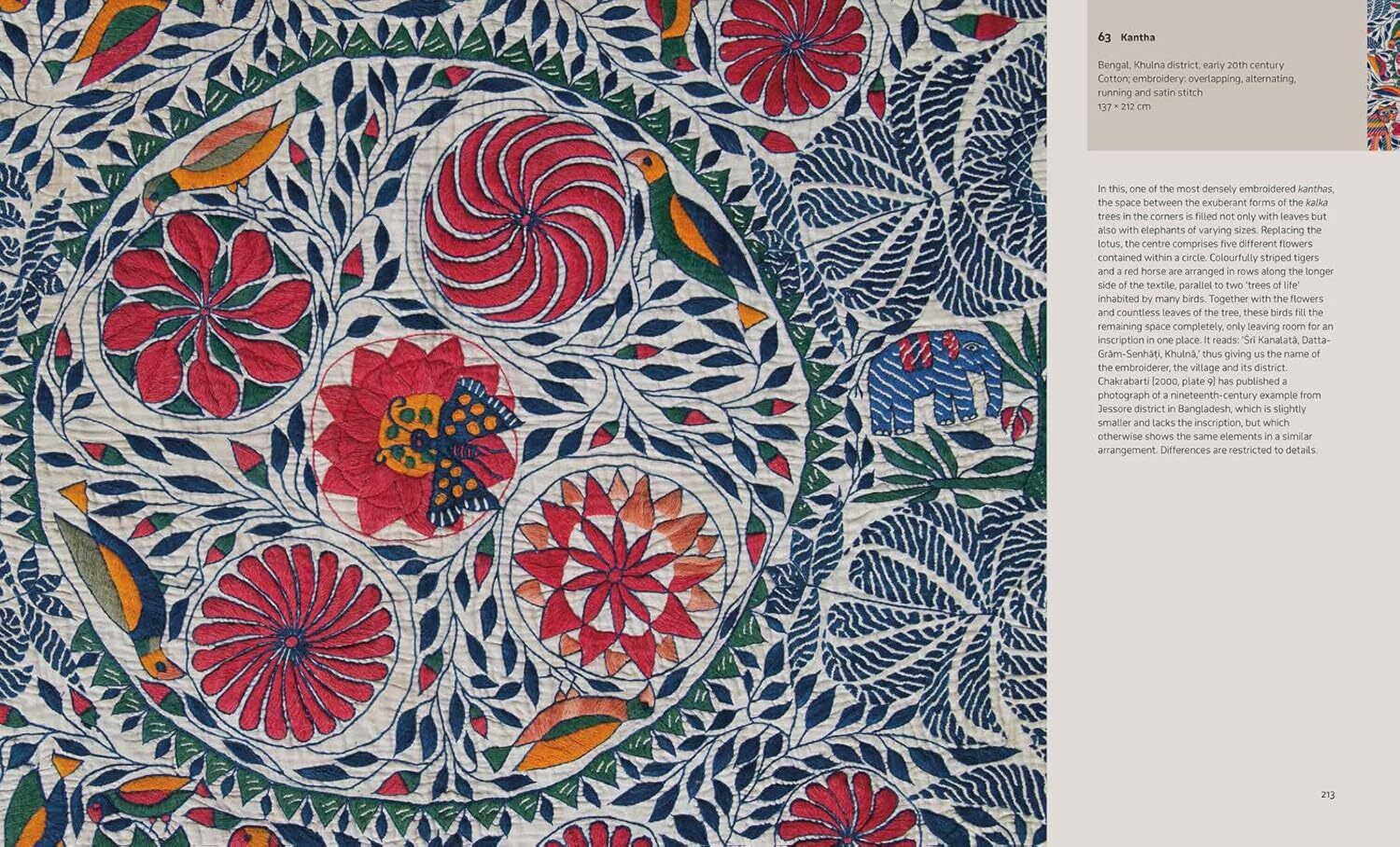 書中依地域劃分,細緻解析不同產地的傳統工藝與獨特風格。例如來自古吉拉特邦的 Patola 絹織、保存於西藏寺廟的緞紋織品、出口至印尼的媒染防染棉布、穆希達巴德出產的絲質紗麗,以及源自孟加拉與旁遮普農村的精美刺繡。這些作品不僅展現精湛的技術,更體現各地文化的獨特審美與生活脈絡。