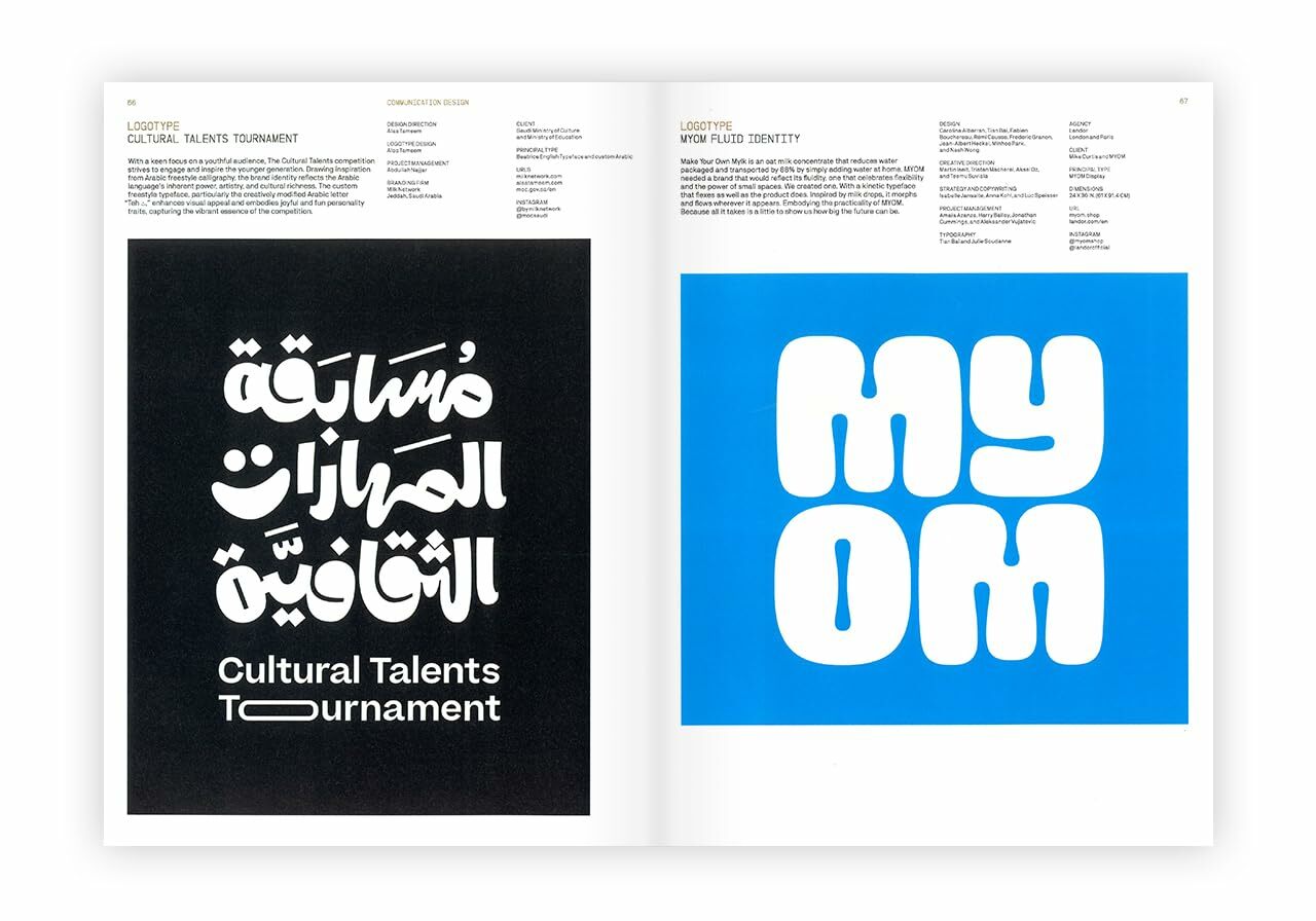 This book showcases some of the most creative designs from around the world, covering a wide range of fields—from kinetic typography to motion design, from packaging design to magazine layouts, from corporate identity to architectural communication. It presents a global competition of typographic excellence, with winning works that are truly breathtaking. Previously, the TDC competition was divided into two categories: Communications Design and Typeface Design. However, the competition has now been consolidated into a single event. This edition attracted over 2,000 submissions, with the final selection recognizing winners in three major categories: Communication Design (137 winning works), Lettering (28 winning works), and Type Design (37 winning works). Additionally, this book includes the Young Ones competition (46 winning works), a category exclusively for students and recent graduates across all creative disciplines.