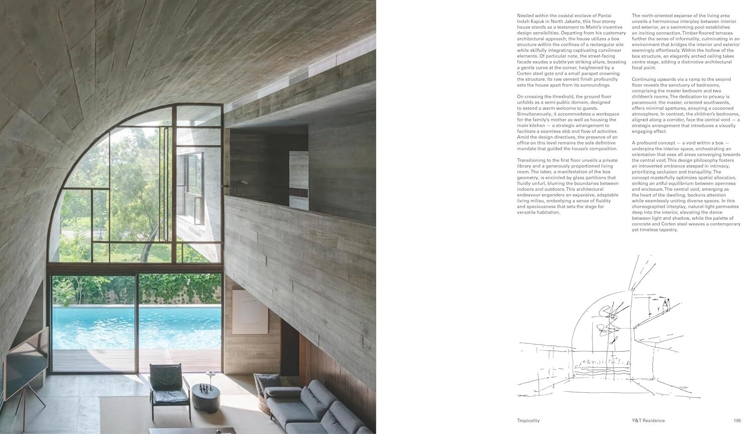 《Tropicality: Houses by Andra Matin》收錄了建築師 Andra Matin 及其工作室過去二十年間最具代表性的十六座住宅作品。這些住宅以精湛工藝與濃厚的熱帶風格脫穎而出,體現出 Matin 對於自然生活節奏的體悟,以及對材料觸感的細膩敏銳。每一棟房子皆展現出與環境和諧共處的建築智慧,無論在美學或氣候回應層面,都令人耳目一新。