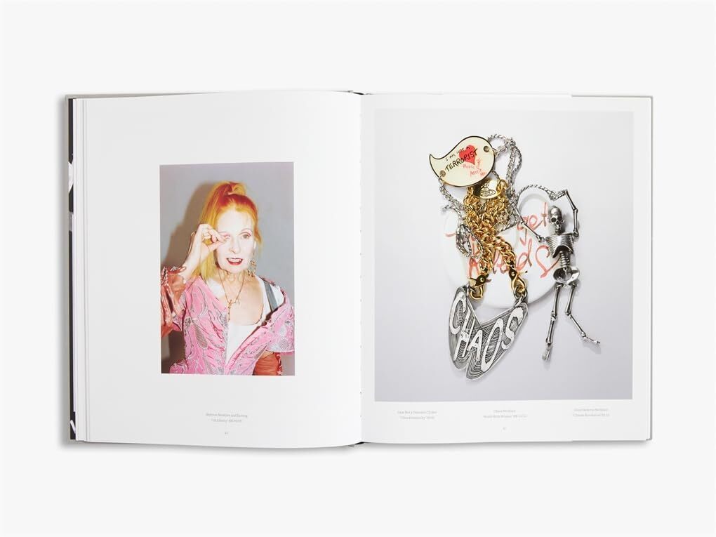 內容涵蓋完整的珠寶類型,包括項鍊、吊飾、耳環、胸針、鼻環、金屬面具、冠飾、鑲嵌寶石的墨鏡以及手環與臂鐲。每件作品皆附有名稱、時裝系列與使用材質的詳細資訊。透過靜物特寫、伸展台影像與 Vivienne Westwood 本人的經典肖像,本書帶領讀者走入一個充滿能量與創造力的世界,深刻感受品牌豐富的文化脈絡與設計傳承。