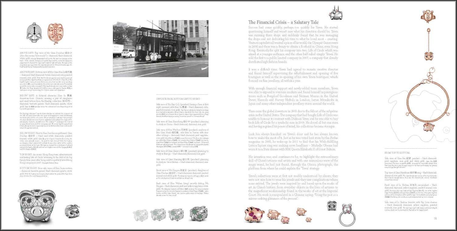 《Yewn》完整展現當代珠寶設計師翁狄森的創作風貌,凸顯其作為「現代文人」的獨特定位。翁狄森的珠寶設計不僅僅是時尚飾品,更是對數千年中國物質文化與藝術史的再詮釋與凝鍊。他的作品中,方形戒指與古瓷造型相互呼應,靈感來源涵蓋明代家具的結構、建築中的幾何窗櫺圖案,乃至於傳統文物的細節符號。這些元素不僅彰顯中華文化的深厚底蘊,更因材質的巧妙運用而顯得別具意涵,其中木材——作為中國哲學五行之一——在他的珠寶系列中時常出現,成為設計語言的重要組成部分。