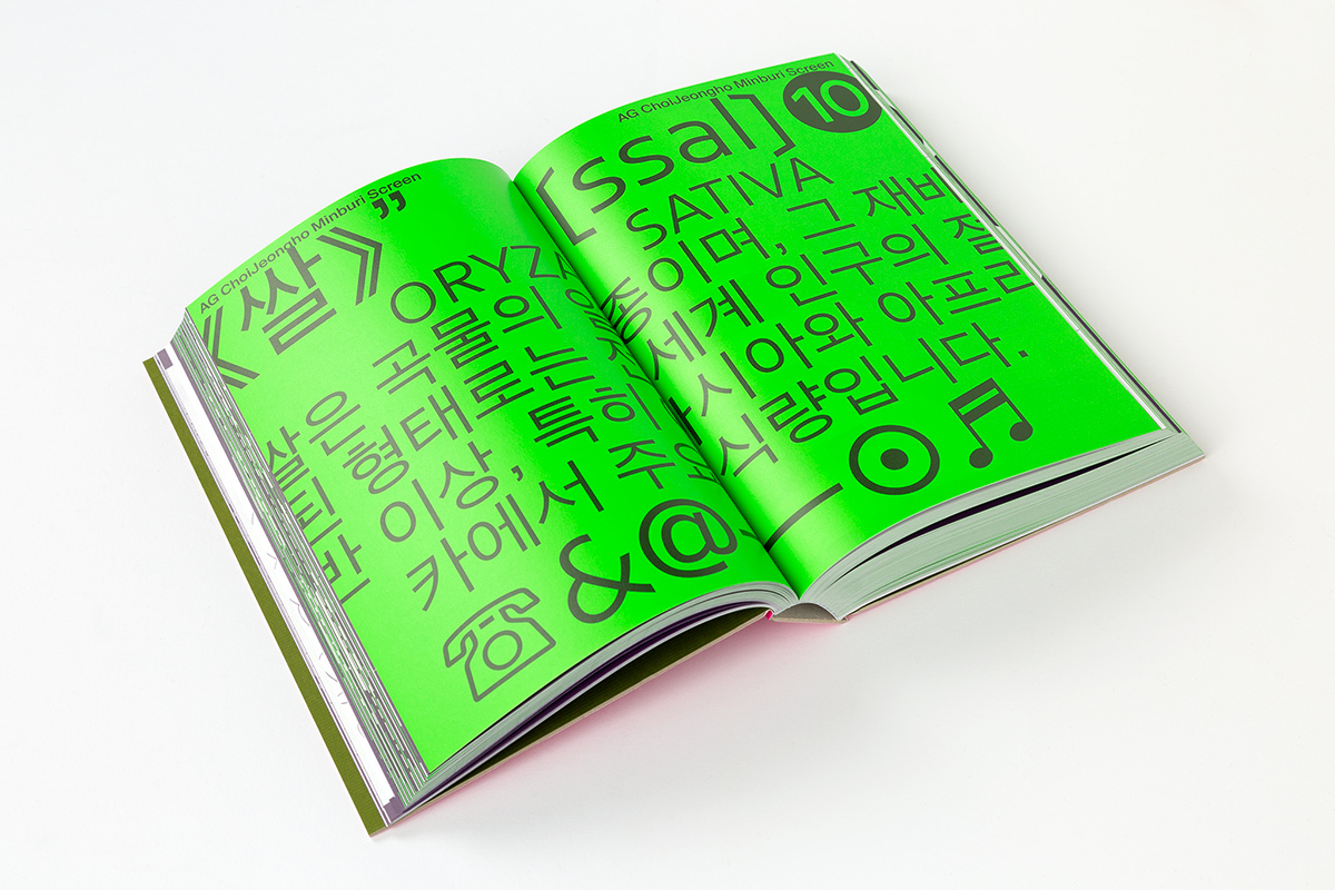 每款字體皆以三頁版面呈現:雙跨頁展示吸睛的視覺範例,展現字體個性;第三頁則詳列字體資訊,包含語系支援、字重字幅、OpenType 功能、設計師與字體公司介紹等。