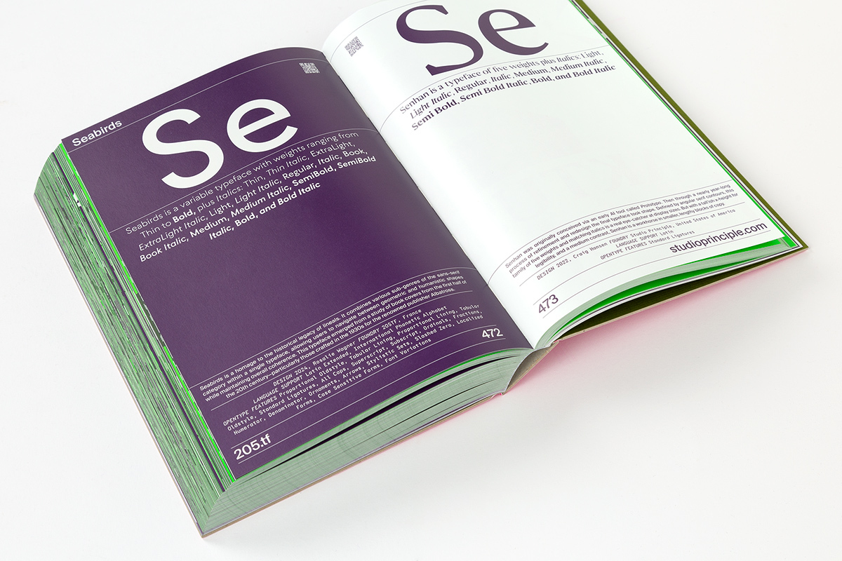 書中共收錄 180 款最新字體,並附 206 位設計師與 108 間字體公司 的索引,涵蓋 29 個國家。另附線上專屬 microsite,提供更快速的字體瀏覽與購買連結,包含第 3 至第 6 輯的所有字型。